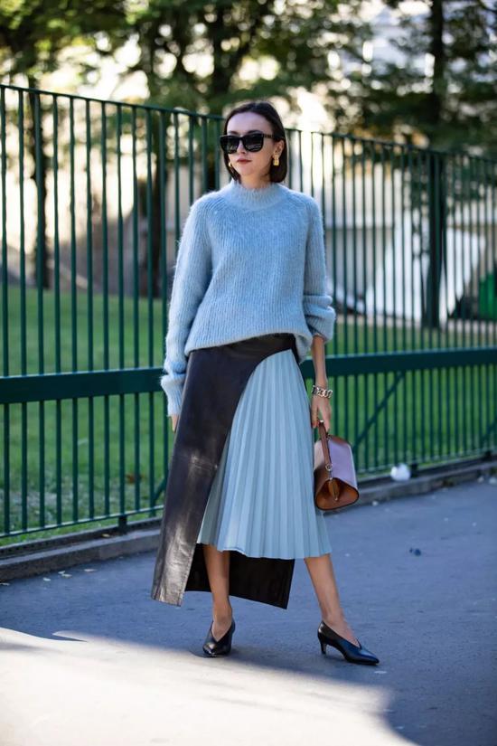 中裙对衣服和鞋子的搭配来说,相对教“友好”,不会过于挑剔,各种风格皆可尝试。