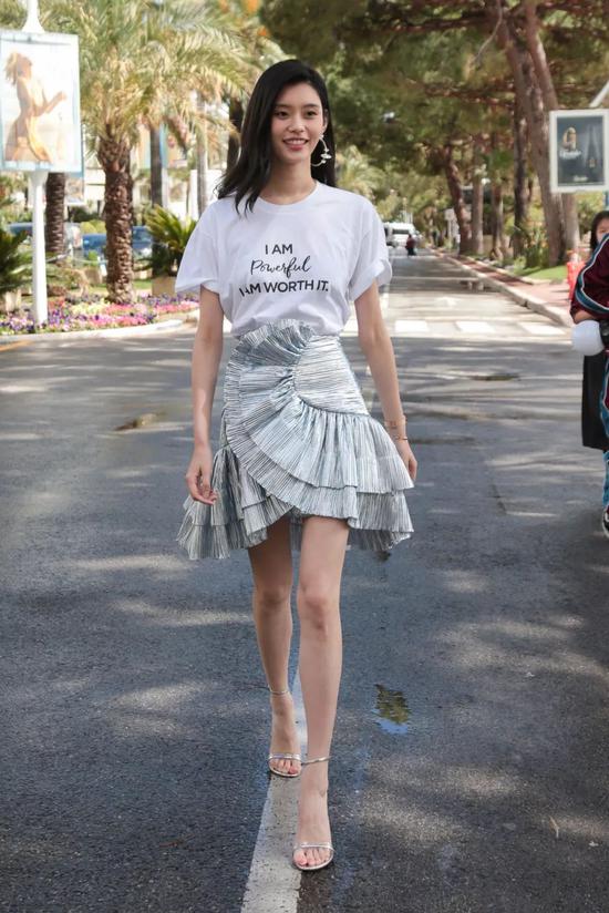 程潇则选择一条纱裙,直接系在腰间,打造叠穿效果,性感魅惑。