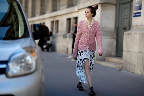 百褶裙也是一大流行单品,而及地裙加上百褶设计,其呈现的效果更是绝美。