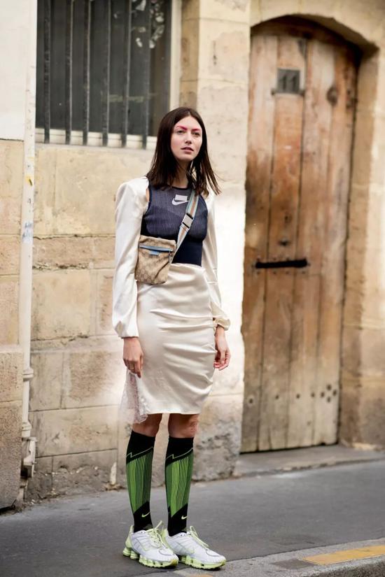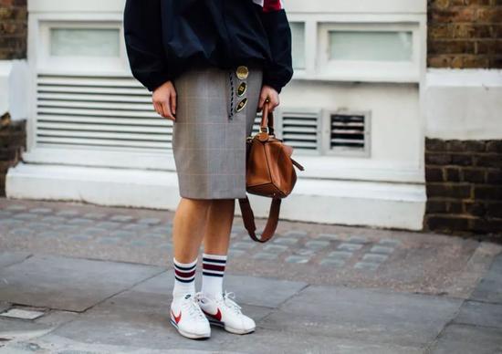 搭配运动鞋袜也不会违和,这可不就打造了一套休闲运动风Look。