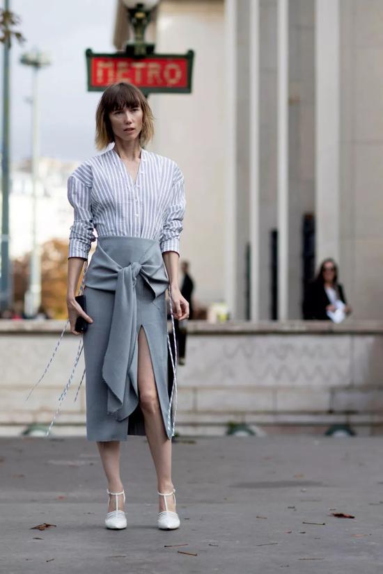 或包臀款或休闲款,将上衣扎进去就对了,妥妥拉长整体的线条。