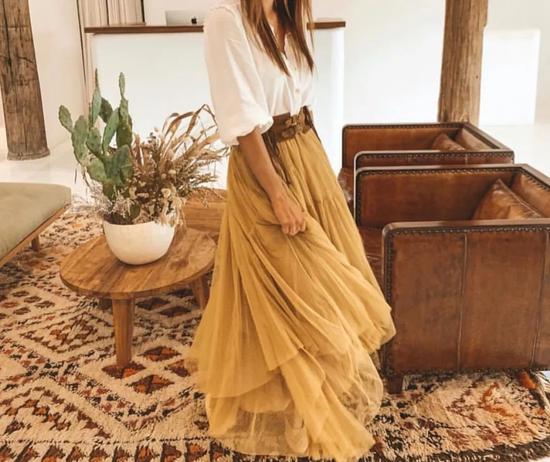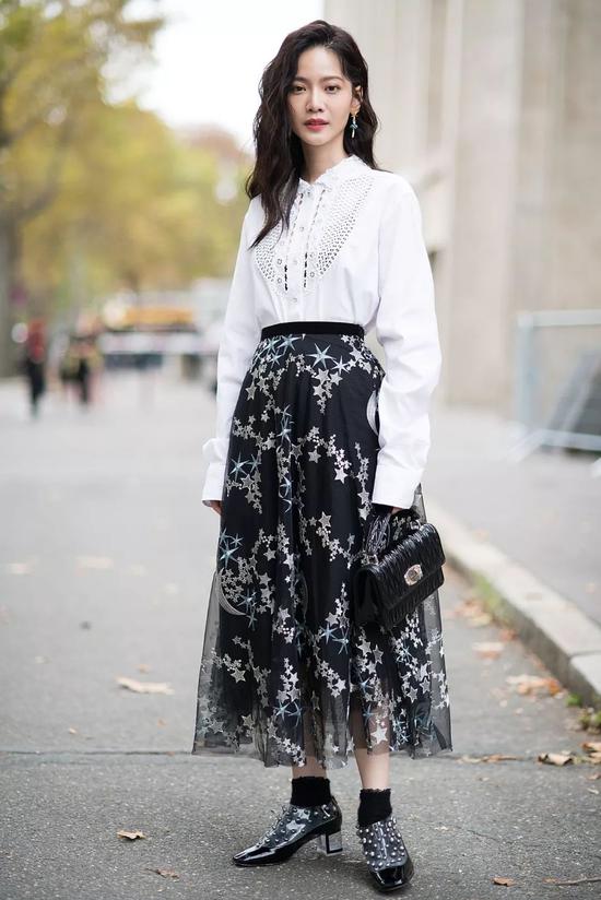 而纱裙对鞋子和上衣的“包容性”更小,只要你喜欢,穿出去基本不会出错。