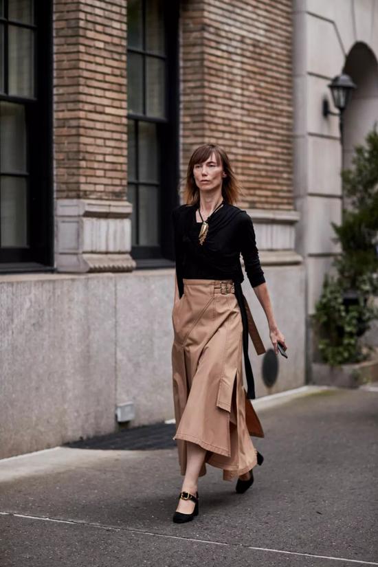 及踝裙主要搭配看鞋子,基本上鞋子的风格就决定了整体。