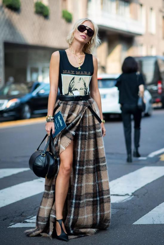 及地裙作为最“接地气”的存在,遮百丑是没得说,而且搭配得当长高5公分不是事儿。但是身高不过160cm的妹子要谨慎上身了,搞不好可能再低八度。
