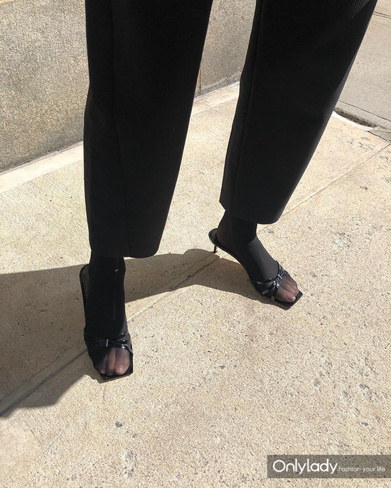 博主Babba Rivera、Christie Tyler今年都在穿细带穆勒凉鞋,方方的低跟不会累脚。