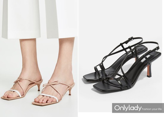 细带凉鞋很多品牌今年夏天都有,贵的有By Far,360美金(下图左);平价的像Topshop,80美金(下图右)。