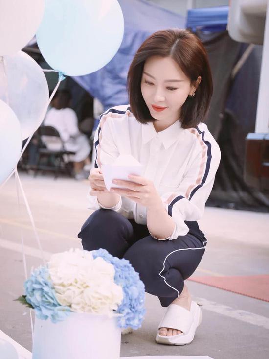 在庆功宴上和陈数一起合影的还有童谣,童谣也同样是一身休闲套装,上身一件藏青色的圆领卫衣,下半身搭配了一条黑白格纹的休闲裤,精致的脸蛋上没有化妆,但是看着却依旧清纯又秀气。42岁的陈数与34岁童谣合照,气场却丝毫不输,反倒更显青春与活力感。