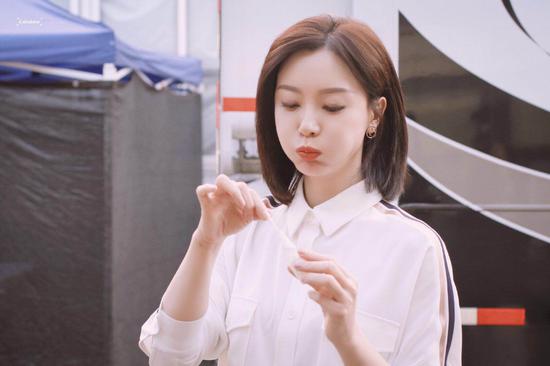 下半身搭配了一条藏青色的运动裤,裤子侧边的白色细条纹正好与衬衫上的条纹相呼应,轻轻松松的彰显出独特的活力感。其实这条运动裤因为斜边的白色线条变得更显腿部的线条,能够使陈数的双腿变得更加纤长。脚上搭配一双白色的气垫拖鞋,为这身青春活力的搭配瞬间增添了几分慵懒随性的感觉,看着日常休闲,没有明星的架子。