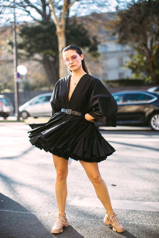 这也是相比较A字裙更推荐X裙的原因。大部分连体A字裙更像是张开的H型裙摆,并不强调腰线,如果不是胳膊瘦腿细的选手穿上身会略有几分像孕妇装。而A字半裙显瘦的诀窍也是在于突出了腰线。