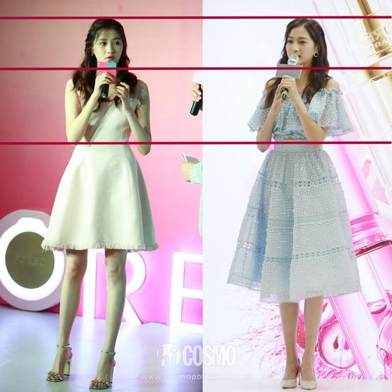 X裙型总结来看有这些特点:下摆是百褶设计,上半身比较宽松,但腰部收得很紧。不仅显瘦,还平添几分少女感,宋祖儿和关晓彤都在用这招。