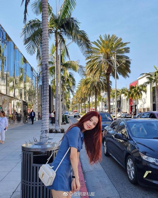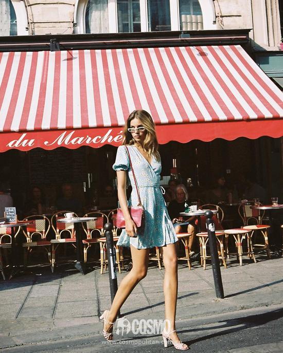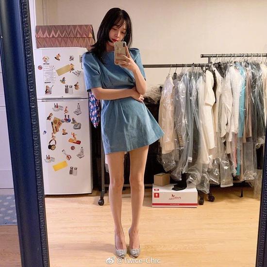 今年很流行蓝色的小裙子,韩美爱豆都在穿蓝色的X型连衣裙,浅色更亮丽,牛仔蓝要休闲一些。