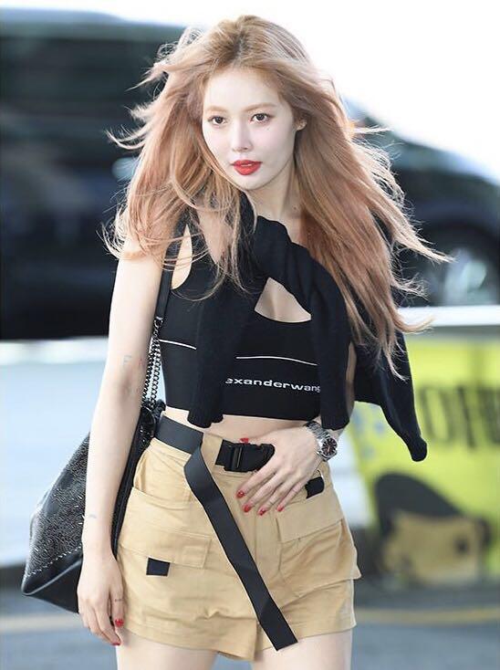 工装裤不仅只有长款的好看,像这种高腰短裤的工装短裤照样A爆全场!泫雅一向是时尚界的“带货女王”,所以跟着她穿准没错!现身机场的泫雅身穿一件黑色的吊带背心,下半身搭配了一条卡其色的工装短裤,裤子腰间还搭配了一根黑色的腰带,增加了搭配的细节感。这样的裤子单品既增加了造型上的时尚个性感,还很适合凹造型哦~