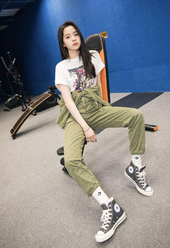 作为工装风忠实粉丝的欧阳娜娜,她的穿搭必须有一套了!一件白色的图案T恤,搭配一条军绿色的工装裤,这条裤子高腰加上绑带 的设计,完全的凹出欧阳娜娜纤细的小蛮腰,时尚感瞬间就出来了。脚上搭配一双黑色的帆布鞋,青春又时尚,妥妥的一个校园时髦小女生的样子就出来啦~