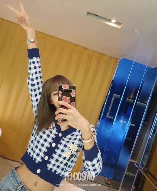 我们的人间芭比Lisa最近炫了一下A4腰,蓝色格纹上衣搭配牛仔裤,简约又不失甜美感。