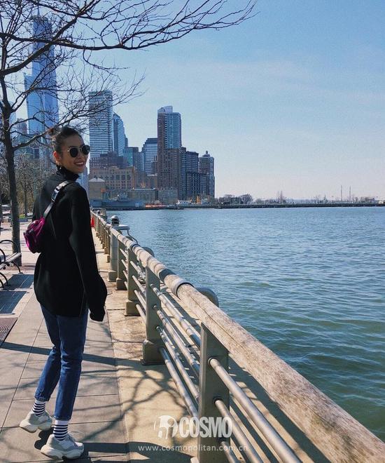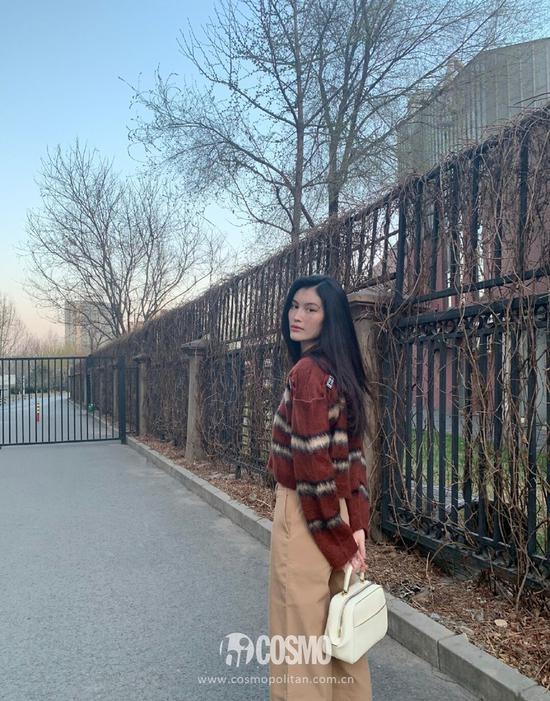 大表姐演绎休闲舒适的easy chic,黑色针织搭配牛仔裤,条纹袜成为整体造型中一个有趣的小心机,网友不禁纷纷感叹道:缺的不是衣服是这气质。