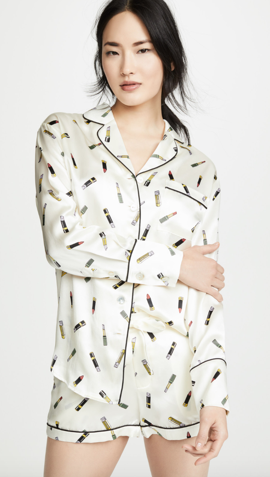 Olivia von Halle的睡衣款式相当多,比较保守的选择当然是耐看的纯色款。ps:套装背面还可以定制自己喜欢的文字。