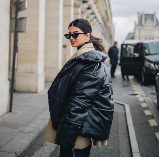 最开始走红就是从这件皮革面包羽绒服开始的。