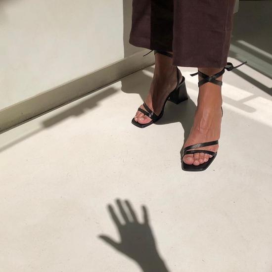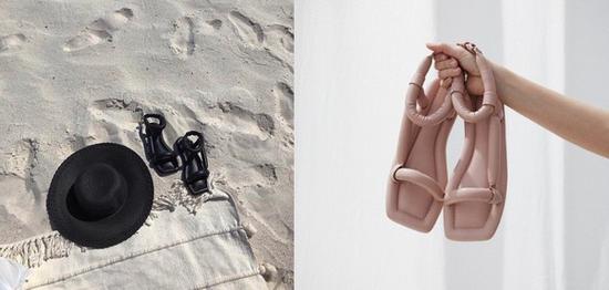 脚踝绑带的Quima凉鞋极简又优雅,宣传大片把鞋子当皮带绑在腰上也是创意满分!