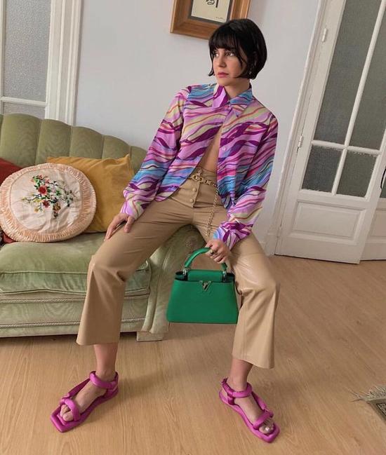 造型师María Bernad用Yola方头凉鞋玩起配色,有种另类的时髦感!