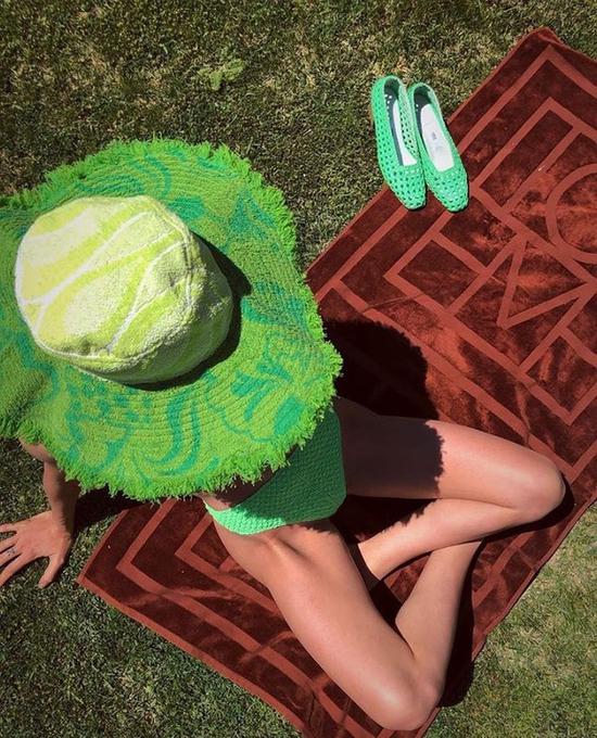 Virgo除了有不同颜色,还有不同材质,时尚博主Aimee Song穿的这双绿色麂皮绒更适合度假穿搭。