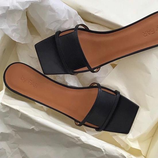 而by FAR新一季推出的夏天方头凉鞋真的能让你穿上美若天仙!这双带弧形跟部的Greta设计的完美角度让你穿起来更显腿长。