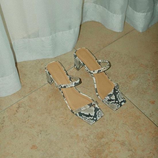 走极简路线的一字带Tanya也是百搭单品,颜色和材质的可选范围超多,还有不同花纹动物纹,高度正合适的小方跟让你穿起来舒适不累。