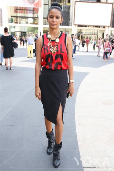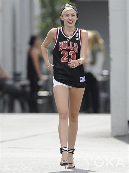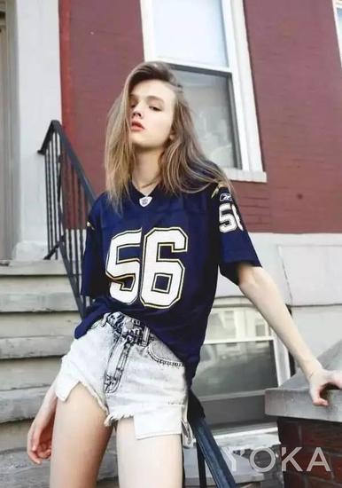 如果搭配牛仔短裤,记得将球衣随意掖在裤子里,或者来个半收半放,在提高腰线的同时还能拉长腿部比例,修饰胯部曲线。