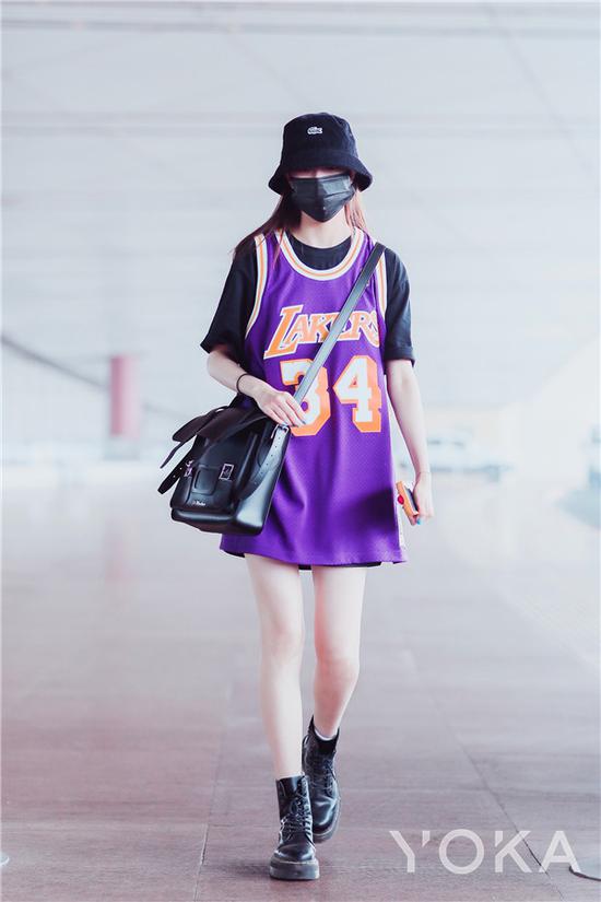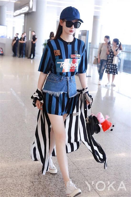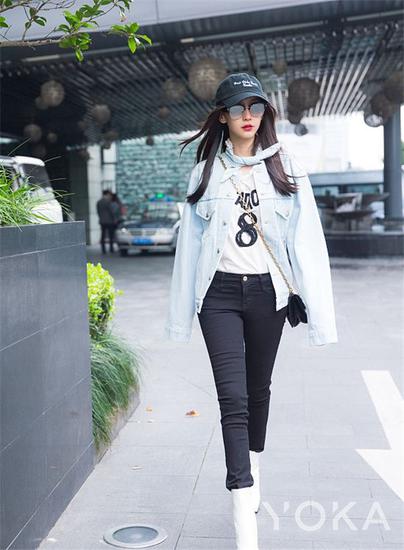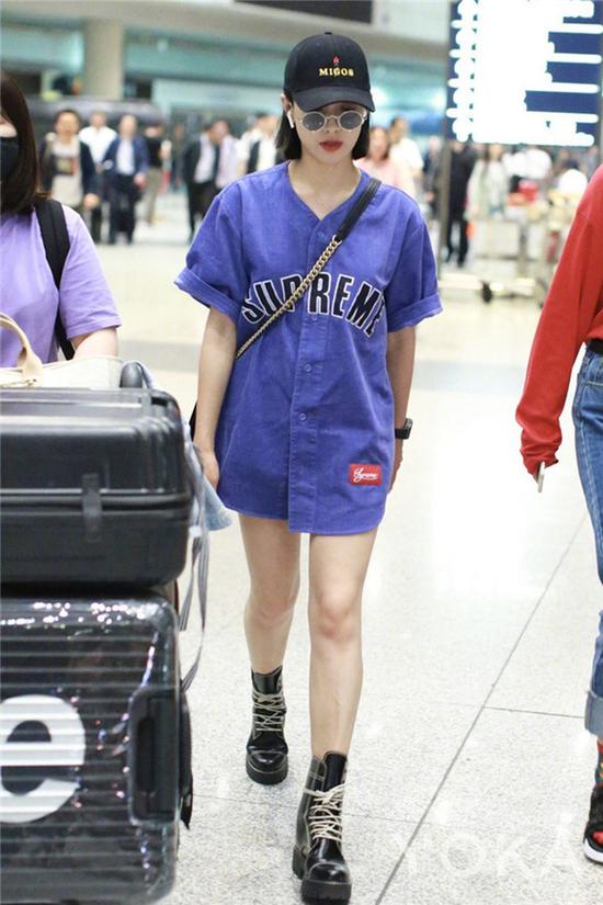 比如戚薇机场街拍中,球衣外戴的牛仔束腰,瞬间收腰还提升了时髦度。