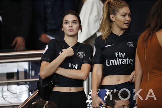 crop top能一秒让BOY风球衣变得性感起来,在视觉上缩短上半身,打造逆天长腿,肯豆和Gigi就完美展示了它的优势。