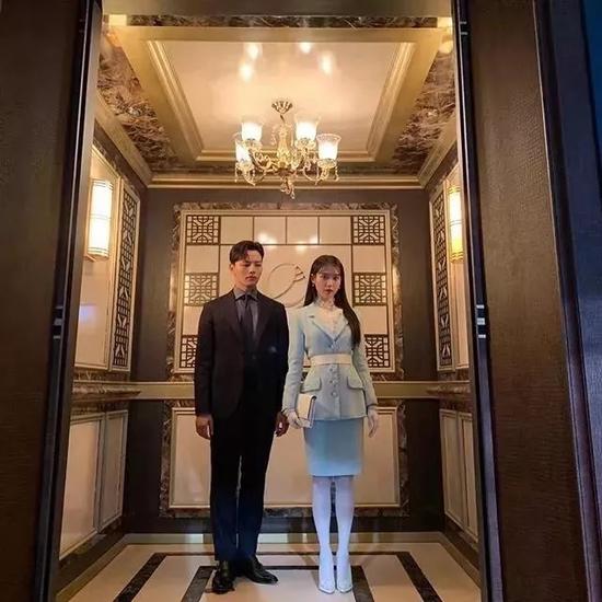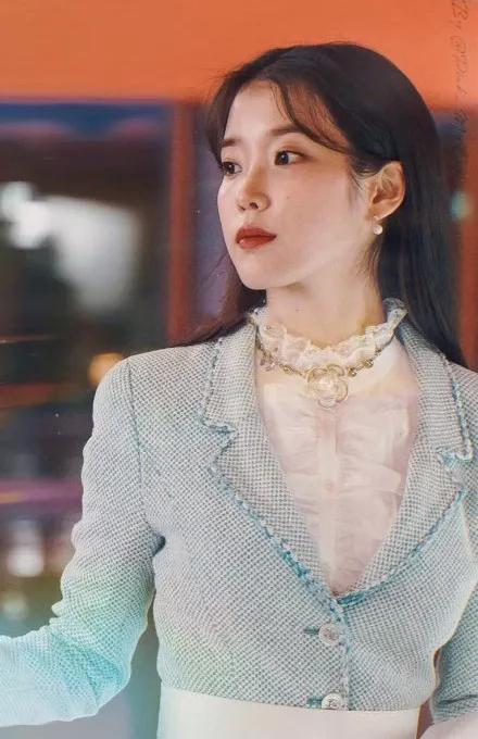 水蓝色的套装利用白色的单品搭配,加上腰带的设计,更是突出了IU纤细的腰线,这样的穿搭还能看出是那个小女生吗?完全是一个气场全开的职场女强人嘛。