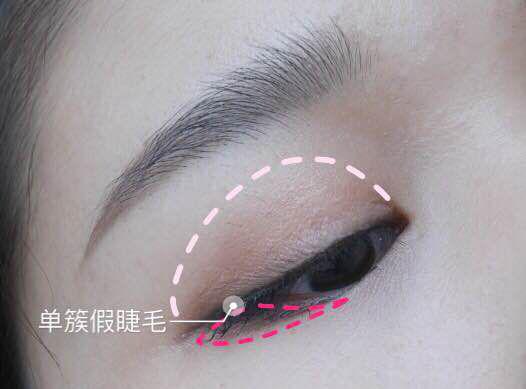 还有一种则是是用单簇的假睫毛在眼尾加密,重点是没有将睫毛夹的非常卷翘,而是让睫毛呈现自然向前的状态(右图)