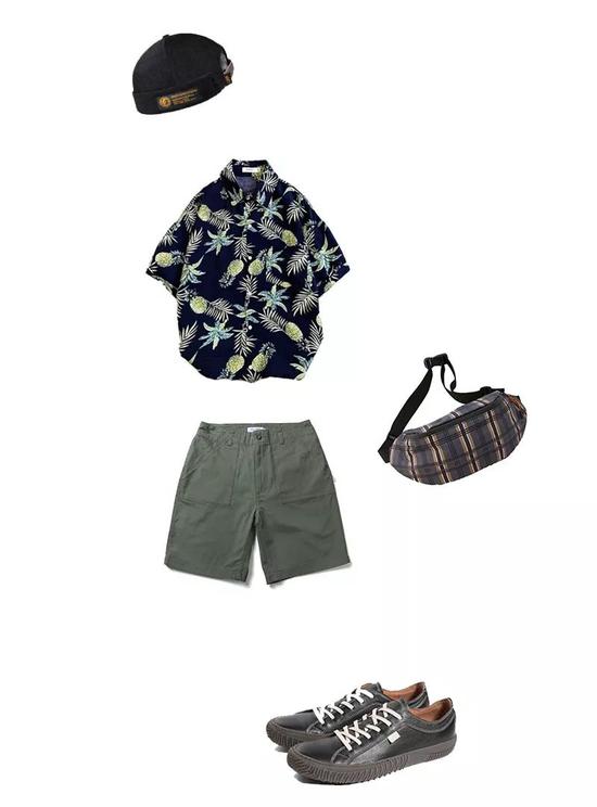 整体搭配日式风格满满,将夏威夷衬衫的雅痞范儿发挥的淋漓尽致,再加上一个格纹背包,增添了整体搭配的层次感。