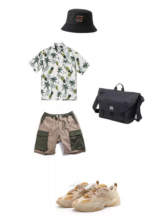 夏季依旧是短裤舞台,夏威夷衬衫搭配休闲短裤,清爽舒适。暗色和亮色要协调才能更显整体的统一,帽子和背包的加入是不是让整体的配色更加和谐呢?