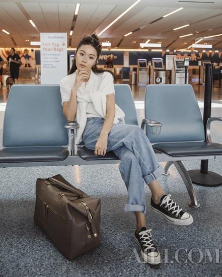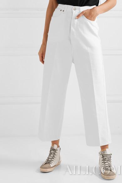 阔腿裤或者喇叭裤长到地面很显瘦,可老爹牛仔裤说不定会起到反作用,想要拥有更加完美的身材比例,可以将裤脚挽起,反而更能强调腿长优势。