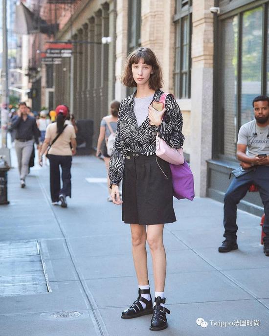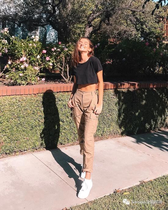 像T恤+运动鞋、靴子,就比较常见了,推荐大家选择短款的上衣,更显腿长~