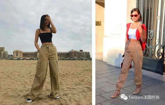 当然,要是气温偏低,不适合穿短裤,也有其他的流行款,比如有着大大口袋的工装裤。