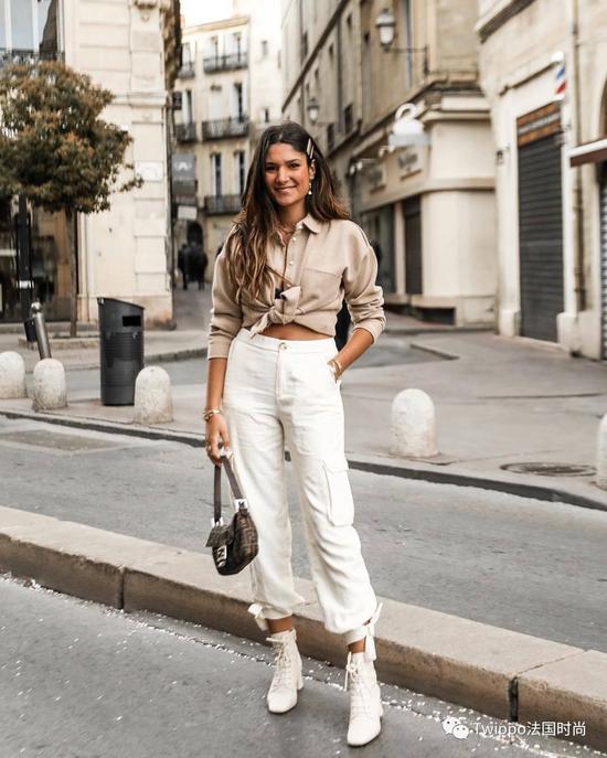 工装裤一般比较适合酷酷的小姐姐,想要用它来穿出优雅感,真的比较难,但你依旧可以用它来混搭衬衫、西装和高跟鞋,不用担心会和你平时的穿衣风格打架。