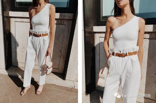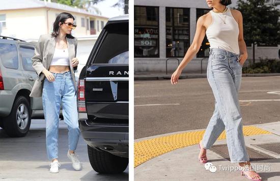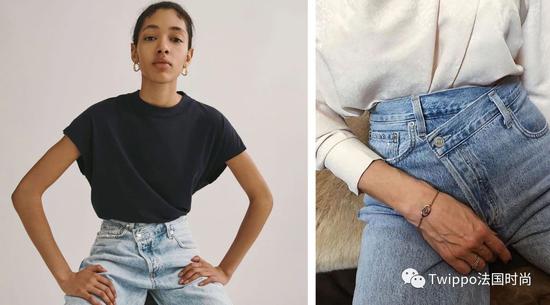 虽然有变化的牛仔裤,整体裤型还是以高腰为主,但是裤腰扣上,有错位的设计,看起来就比以前的普通款式,时髦了不止一点点了。