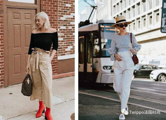 但是选裤腿需要注意一下,现在很多纸袋裤,做成了阔腿的形式,而且为了增加气场,还有点长,这种就更适合长腿的仙女