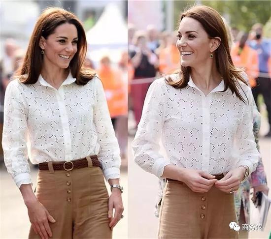 看来,不仅职场girl喜欢拿白衬衫来通勤,连王室成员们也不例外,时不时都会拿它出来穿搭,应付一下公开场面。