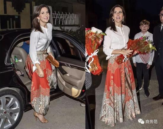 另外,其实白衬衫也可以和长裙、甚至礼服裙一起搭配,如此操作的王妃不止一位。