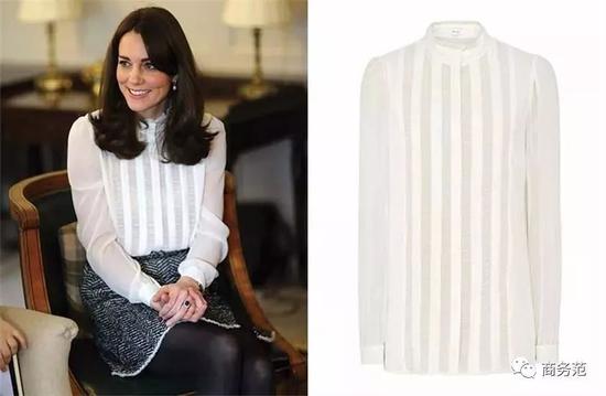 除了以上这些,有时候也可以像凯特,适当采用薄纱质地的白衬衫,比如这件Reiss,“端庄”的款型,减少了薄纱容易产生的不正式感,在室内的场合使用也合适。