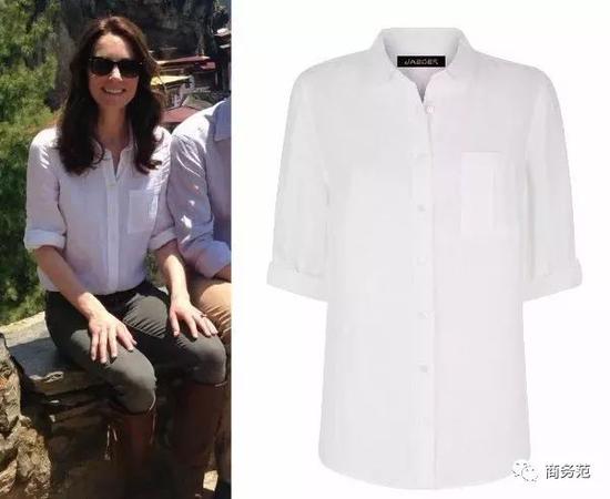 还有,如果喜欢中性画风的girl,可以考虑一下有前胸口袋的白衬衫,比如夏琳王妃和约旦王妃的BV,双口袋设计有种“工装感”,适当解开扣子穿还蛮率性大女人滴~