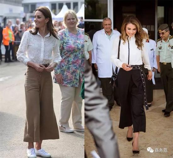 除了以上这些,说到白衬衫的穿搭,就不得不提裤装和裙装,这两类下半身单品,在挑选时,也有一些tips可以跟王妃们学。