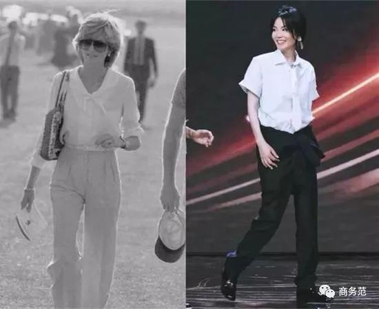 当然,如果你看腻了阔腿裤,还可以像戴妃这样,用白衬衫搭宽松的西服裤,有一种潇洒帅气,王菲也曾这么打扮过哦~