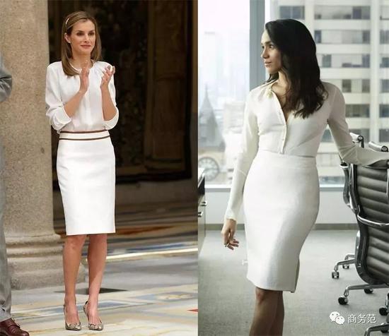 说到在职场用白衬衫搭配裙子,也许很多人都会想到很OL风的铅笔裙,莱后和梅根,分别在现实和剧中演绎过,很显身材。