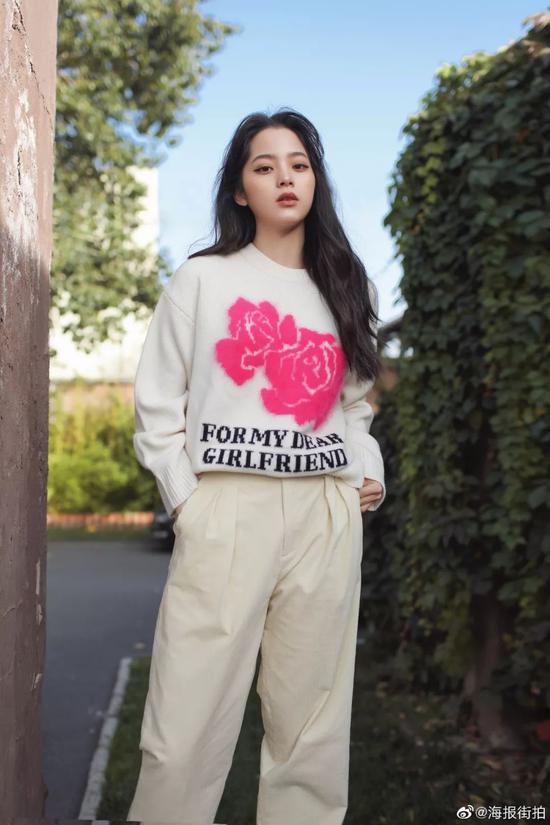 白鹿穿着印有“自己”的毛衣,实在是呼应的十分可爱。