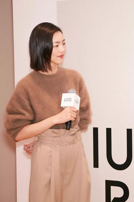 驼色的毛衣就像是太妃糖口味的棉花糖,非常适合秋天的颜色。刘雯本身的气质就很适合这样温暖舒服的衣服。