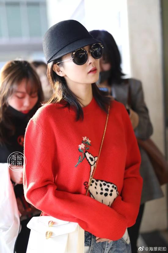 或者像宋祖儿一样,用黑丝和皮裤来搭配。温暖的乳白色,让这件Gucci毛衣上可爱的小鹿更能凸显出来,少女感十足。