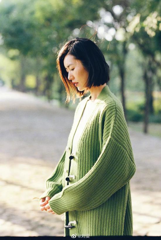 说完了红色该说绿了,刘雯的这件开衫毛衣应该是抹茶口味的,温暖的感觉一看便知。